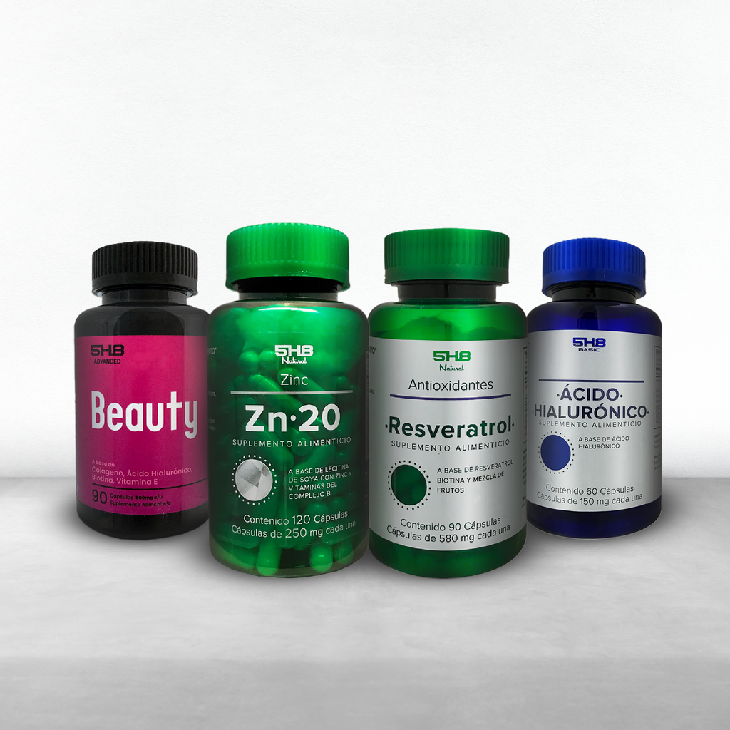 Kit 3 contiene Beauty, Acido Hialuronico, Zinc y Resveratrol.